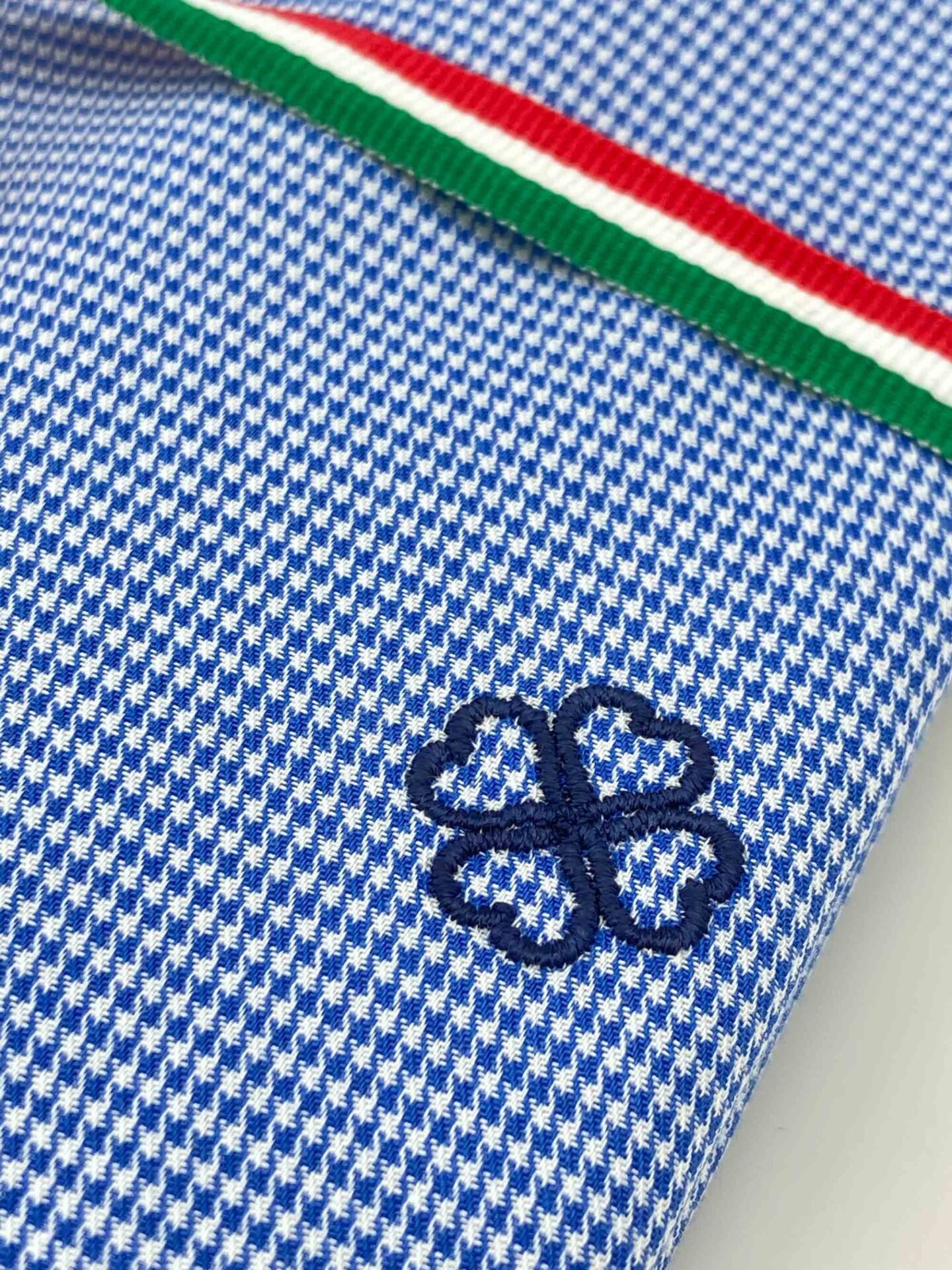 Camisa micro pata de gallo, tejido sarga fina, color azul.
