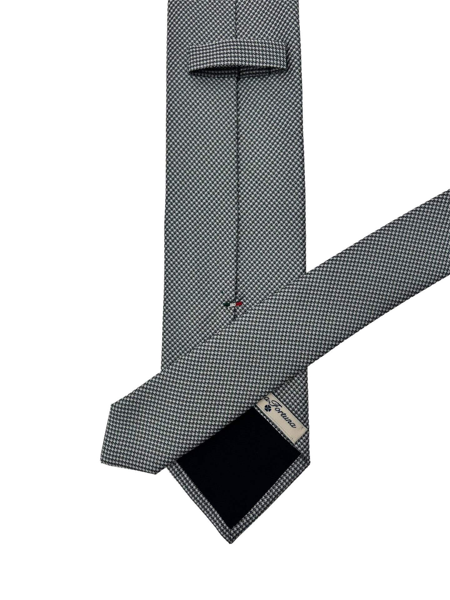 El tejido jacquard integra el diseño en la propia estructura de la seda, generando un relieve sutil que aporta textura y profundidad. Este detalle técnico no solo eleva la calidad estética del accesorio, sino que también garantiza mayor resistencia y durabilidad con el paso del tiempo. La Corbata Cravatta Jacquard Verde Patrón Pata de Gallo combina especialmente bien con camisas blancas, azul claro o incluso en tonos beige, así como con trajes gris oscuro, azul marino o marrón, logrando un equilibrio elegante y distintivo.