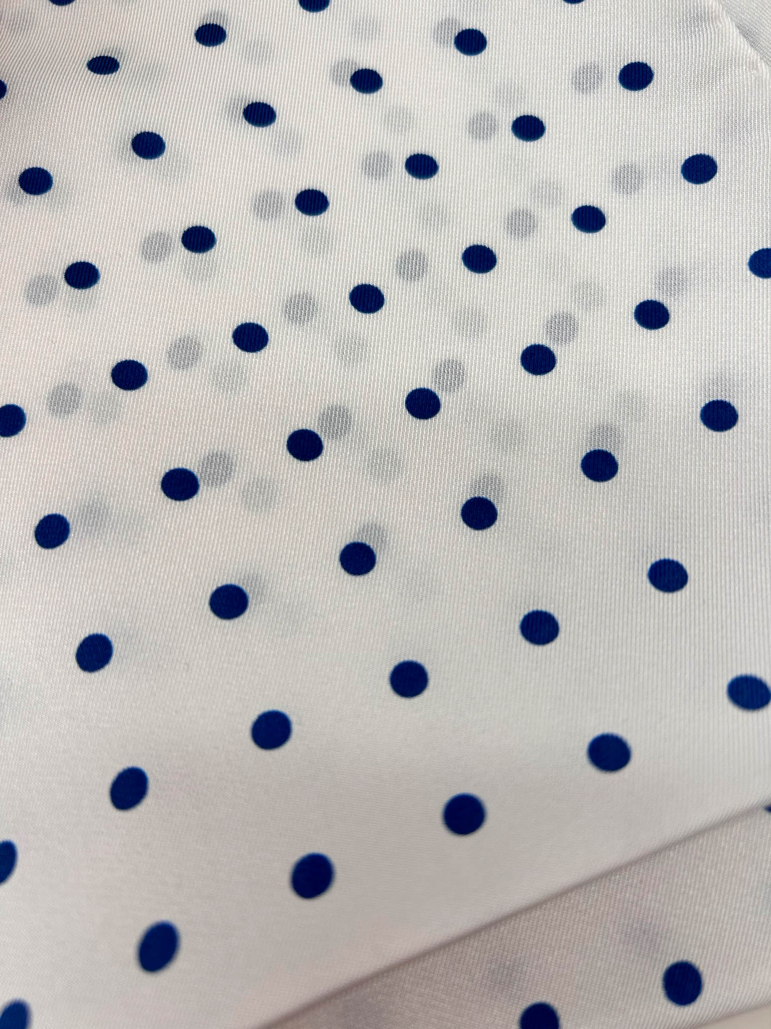 Pañuelo de bolsillo blanco con topos azules, un fino clásico, fresco y elegante.